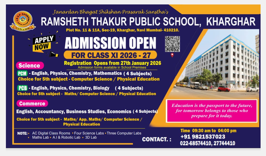 RAMSHETH THAKUR PUBLIC SCHOOL is an ambitious venture of Janardan Bhagat Shikshan Prasarak Sanstha which believes in qualitative education. It’s mission and ambition is to ever expand the scope of educational facilities so as to benefit the larger segments of the society. It is an Educational Institution that combines quality, innovation, tradition and modernity. Their purpose is to produce a new generation of well groomed, well – enlightened, sincere and responsible citizens of the nation.